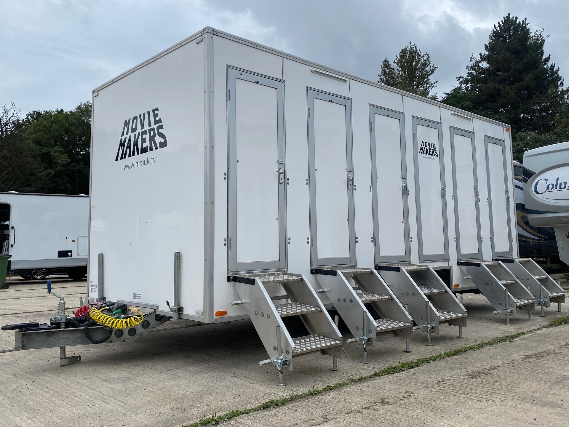 These honey wagons have 10 individual unisex cubicles with flushable toilets, sinks with hot and cold running water. They are also heated.