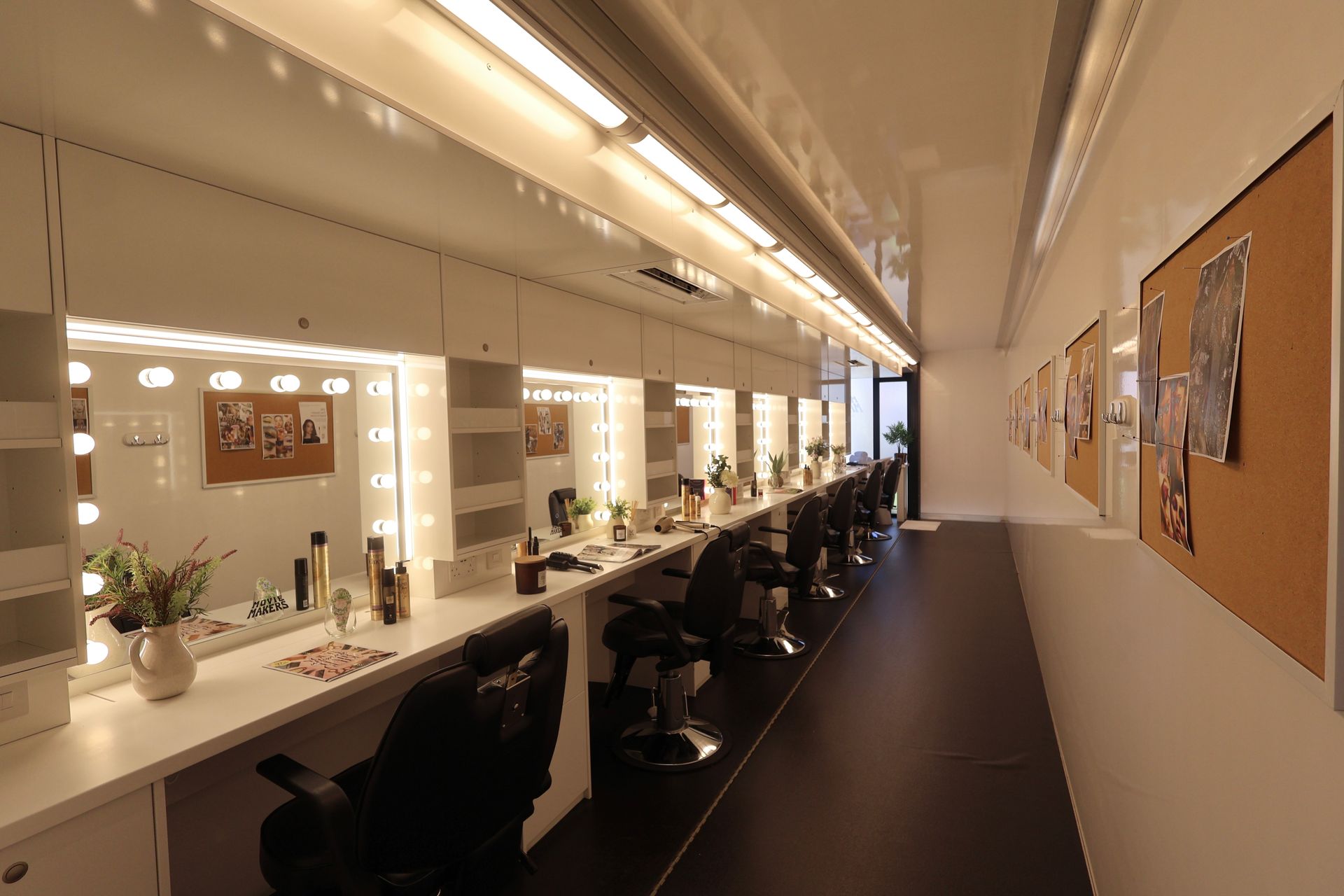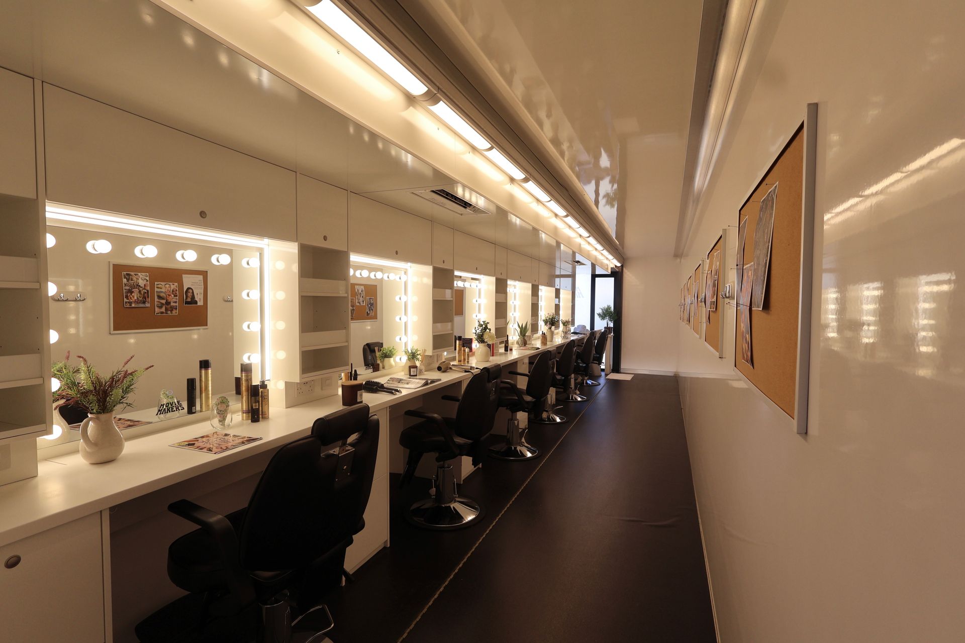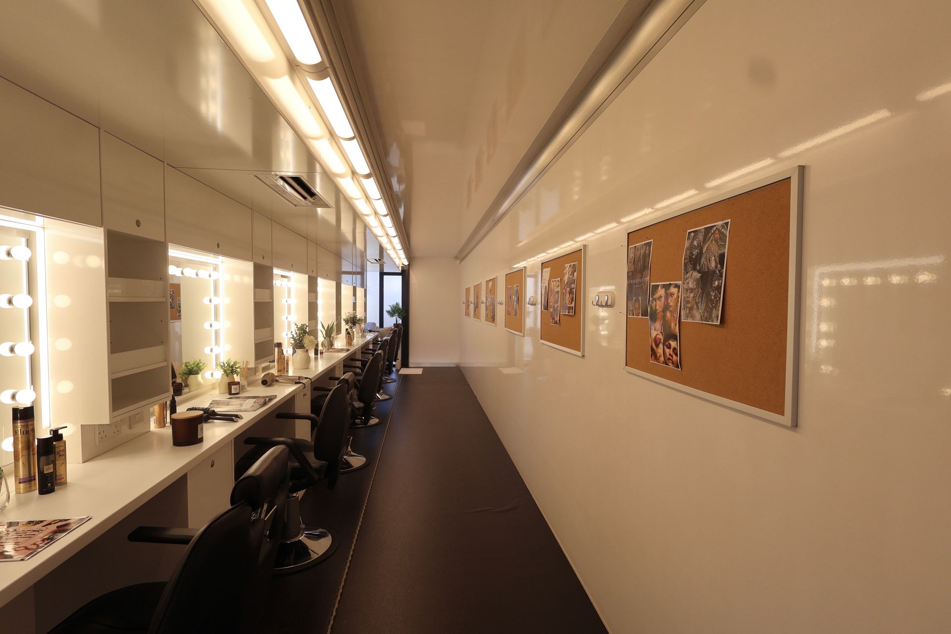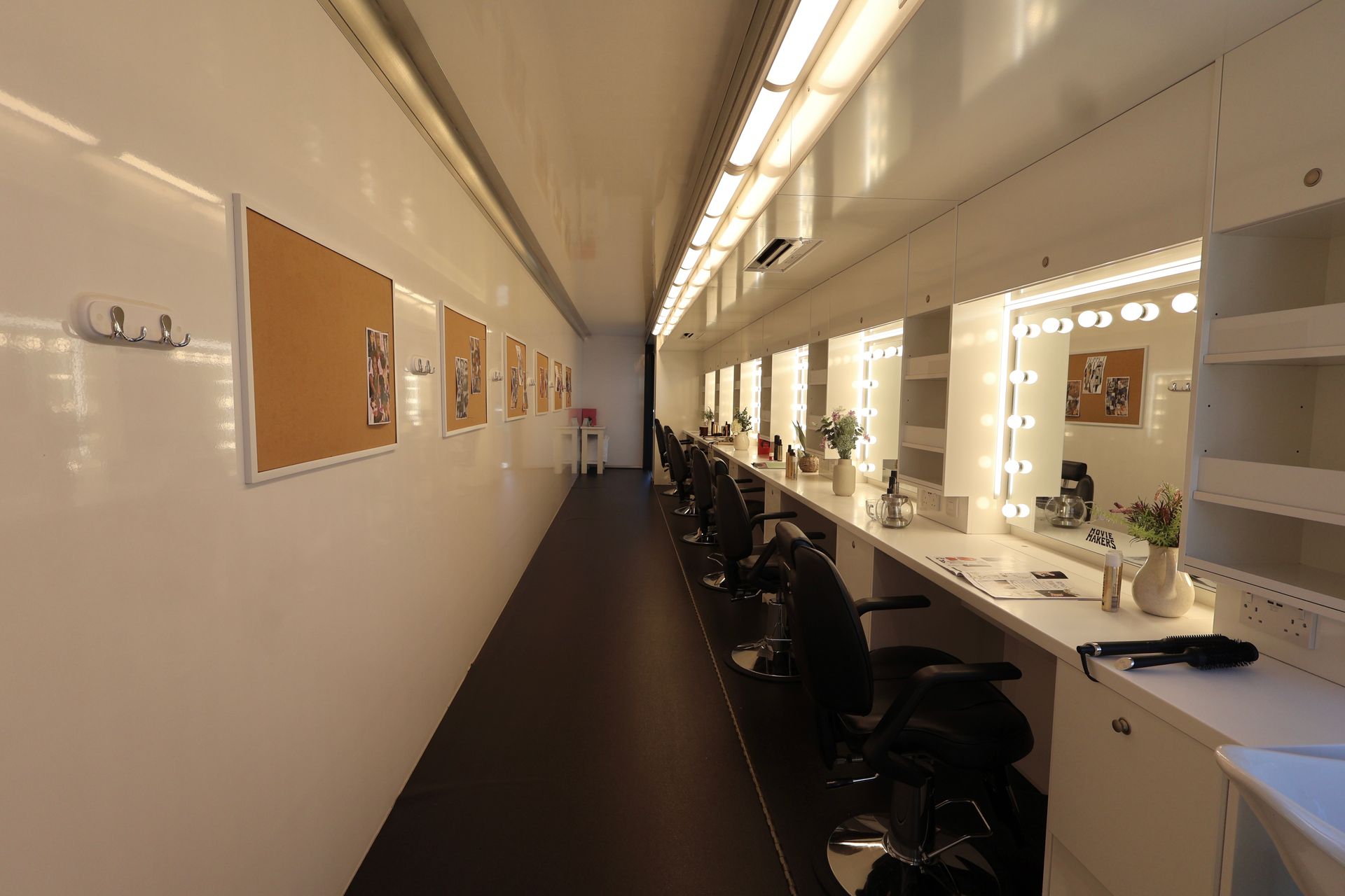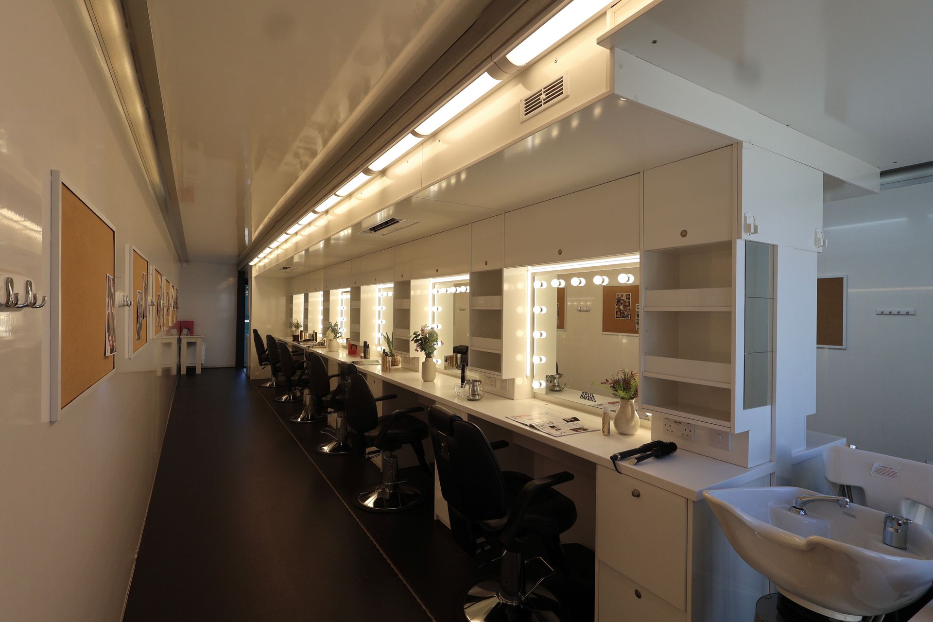 The 12 Position Make Up has 2 full length slide out giving a light and spacious environment. It has kitchen facilities, 2 back wash sinks and a washing machine.