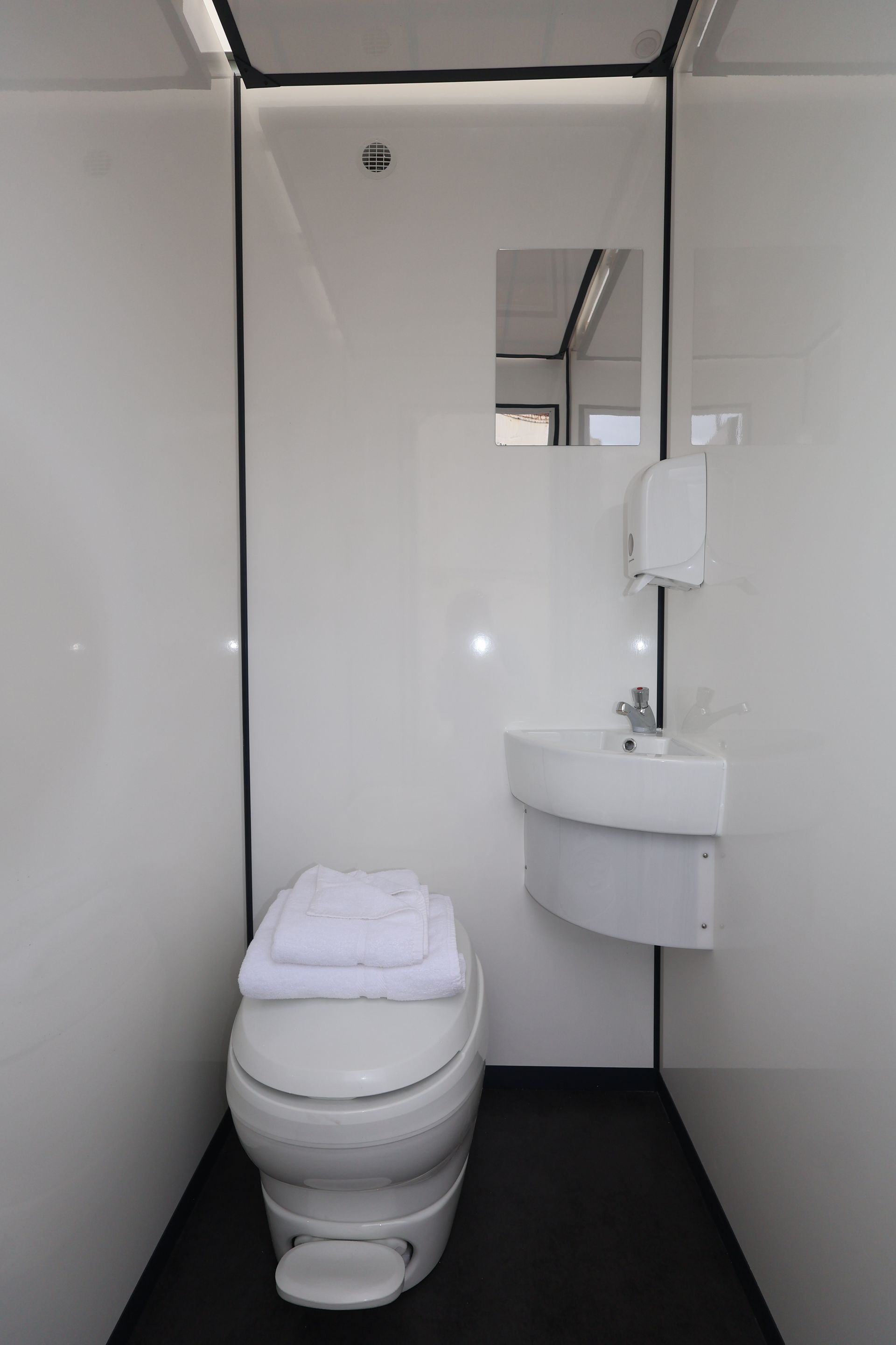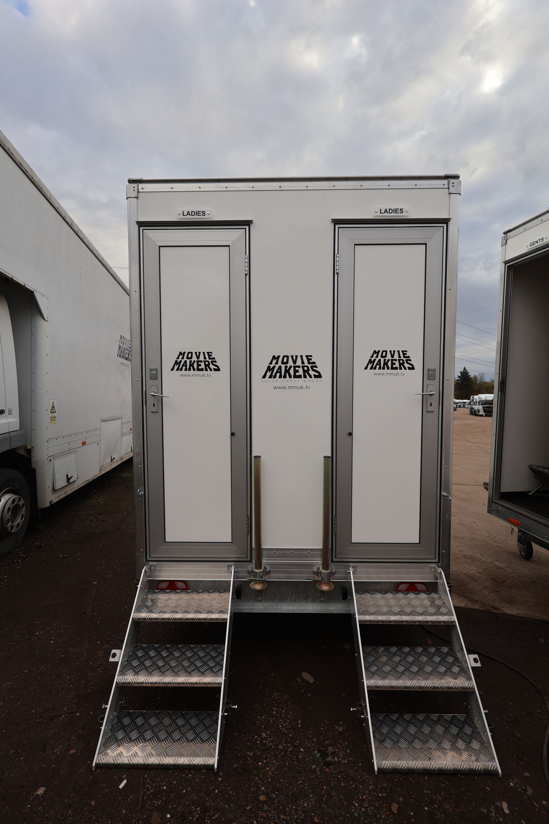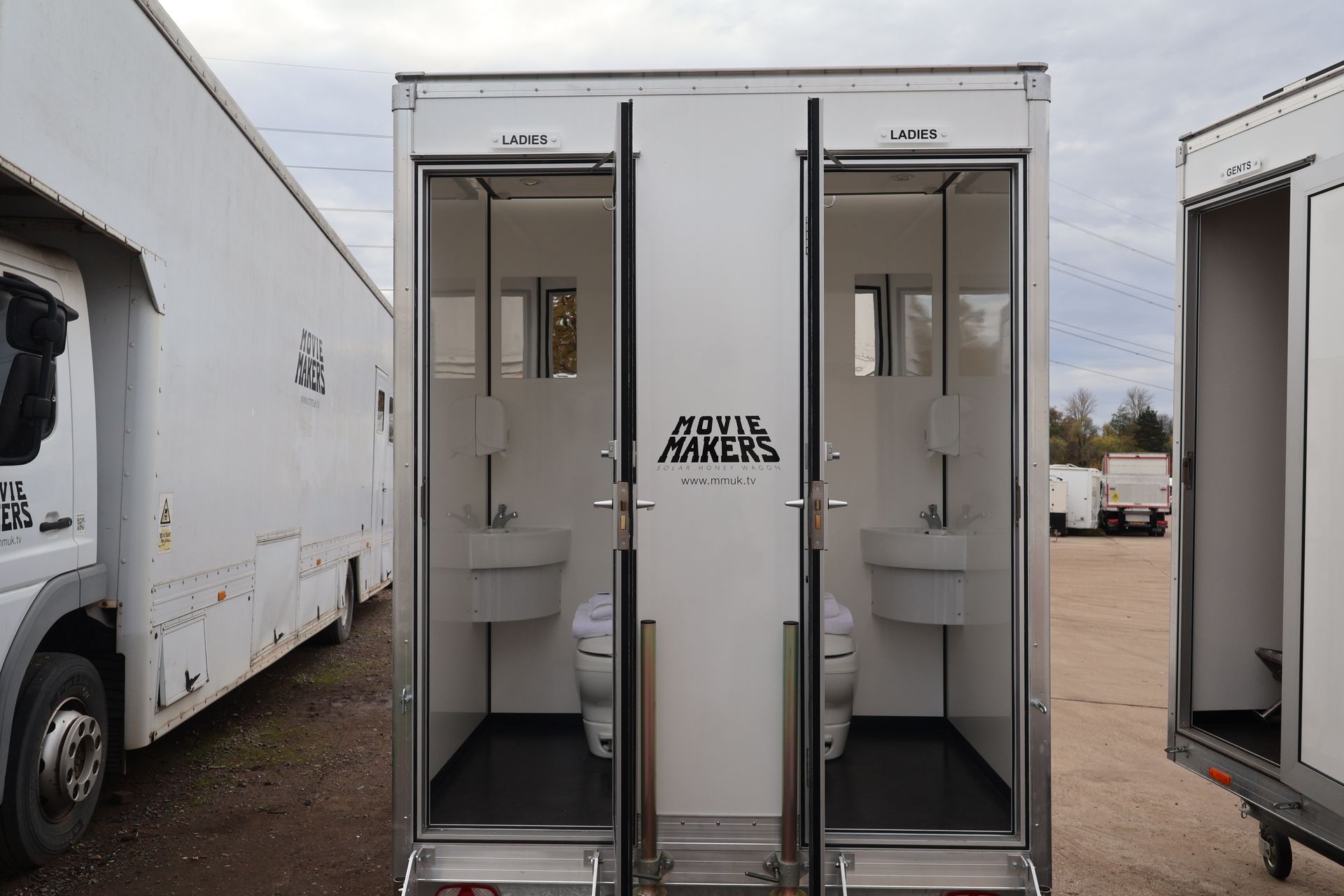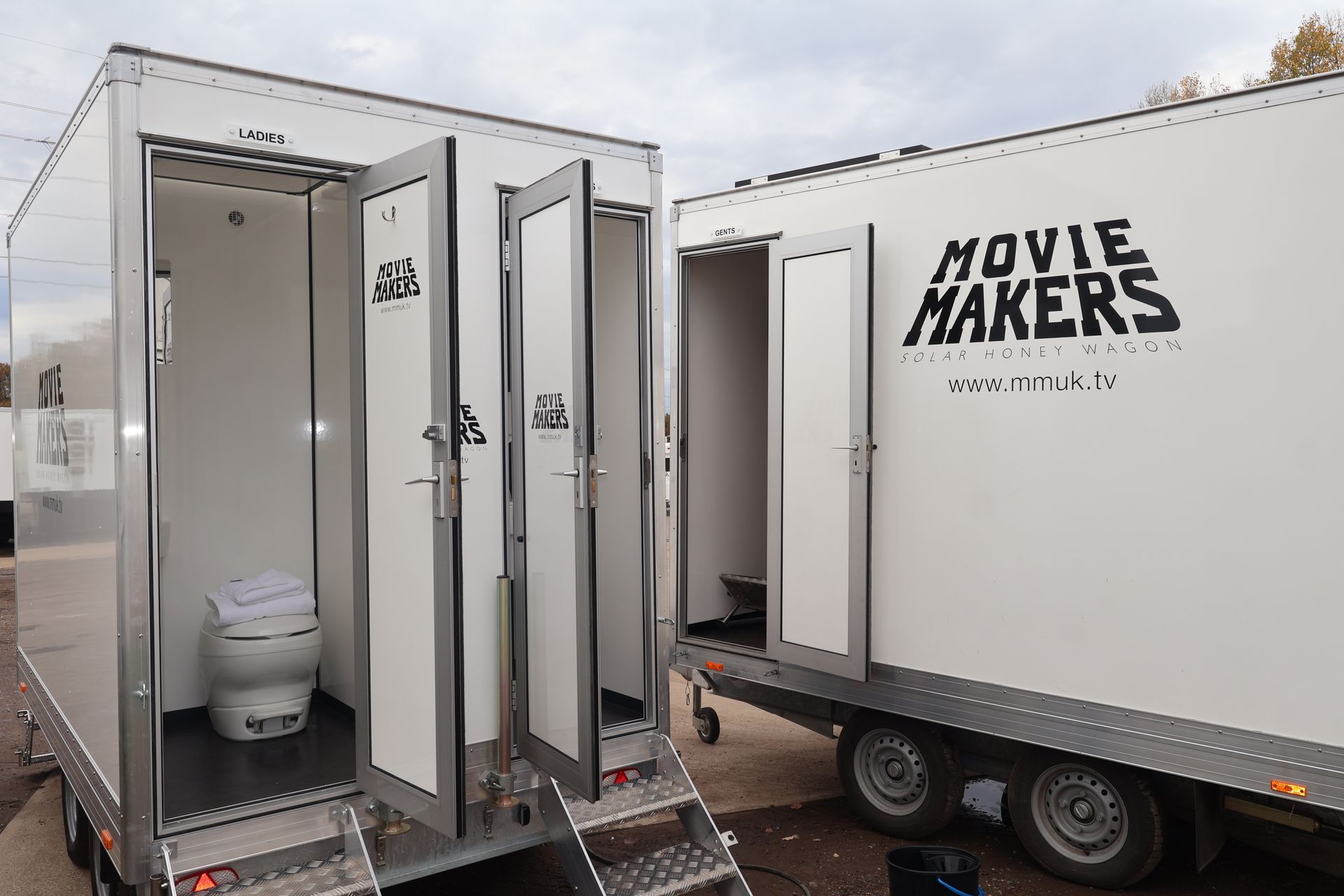Our solar-paneled 4-bay honey wagon redefines on-set comfort with a modern, sustainable design. Each unit features flushable toilets, sinks with hot and cold running water, and paper towel dispensers for both ladies and gents. Thoughtfully designed interiors include concealed lighting and stylish finishes, creating a clean, comfortable, and inviting environment for everyone on set.