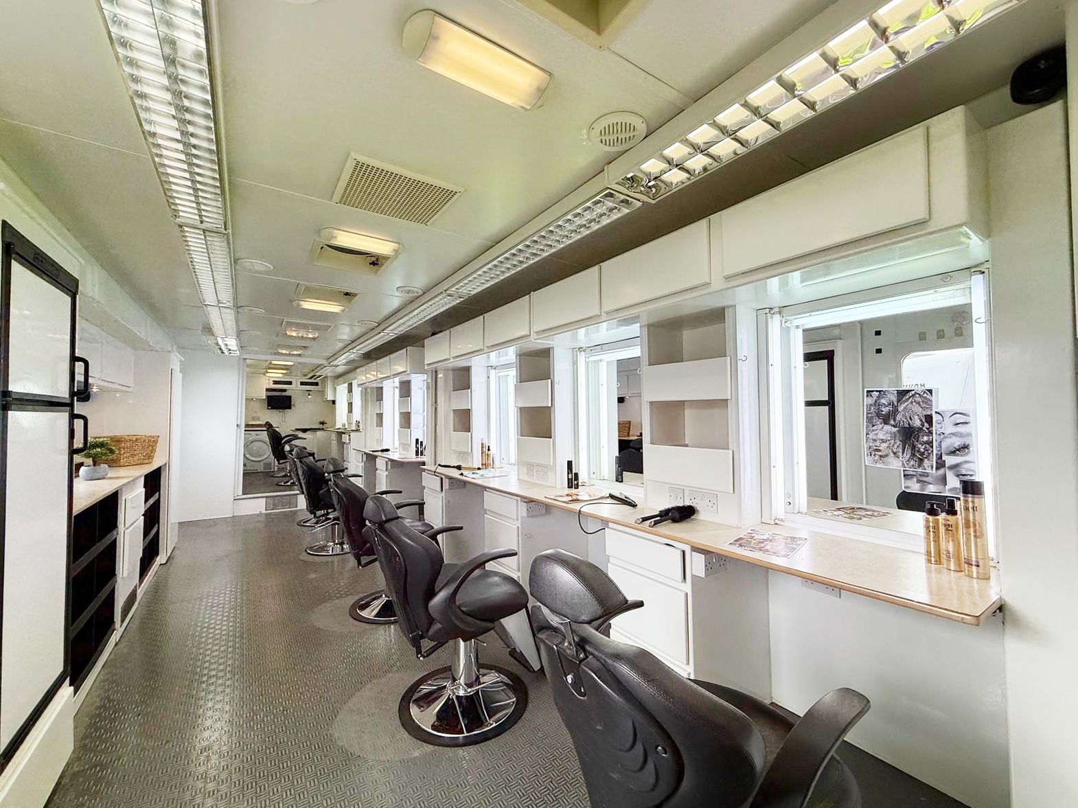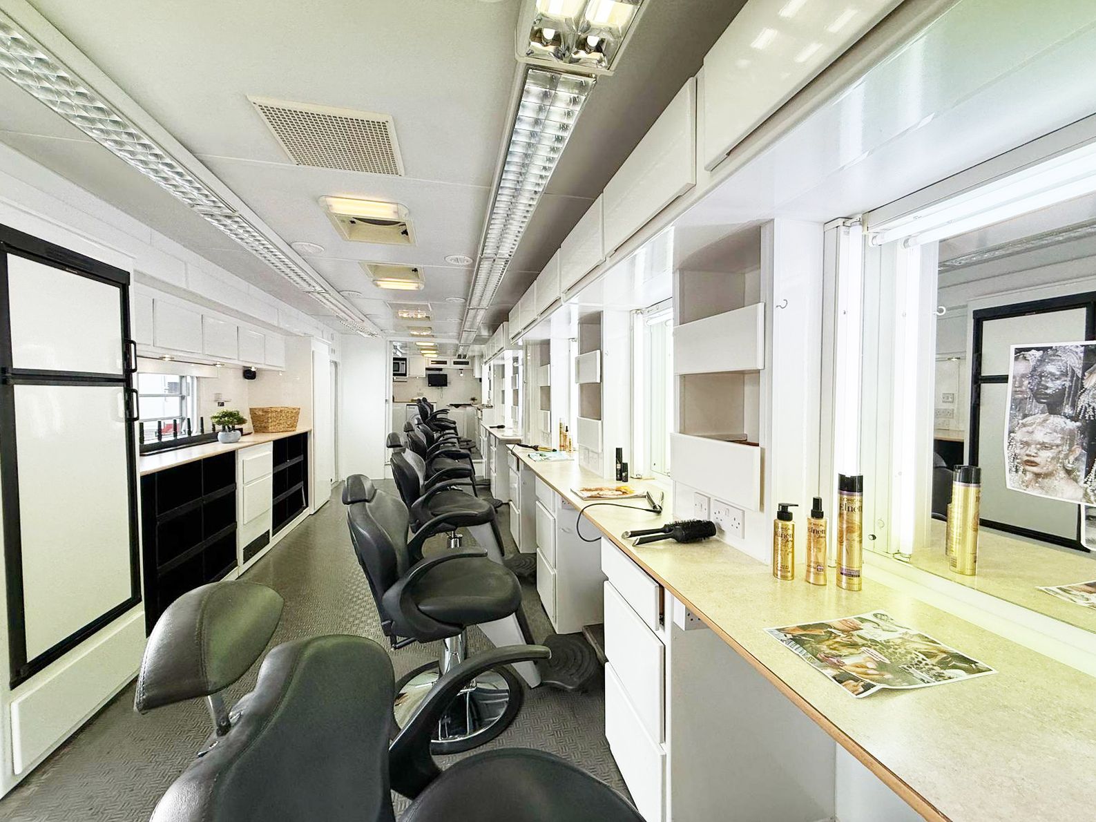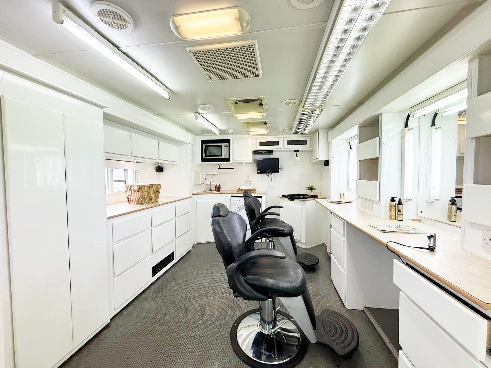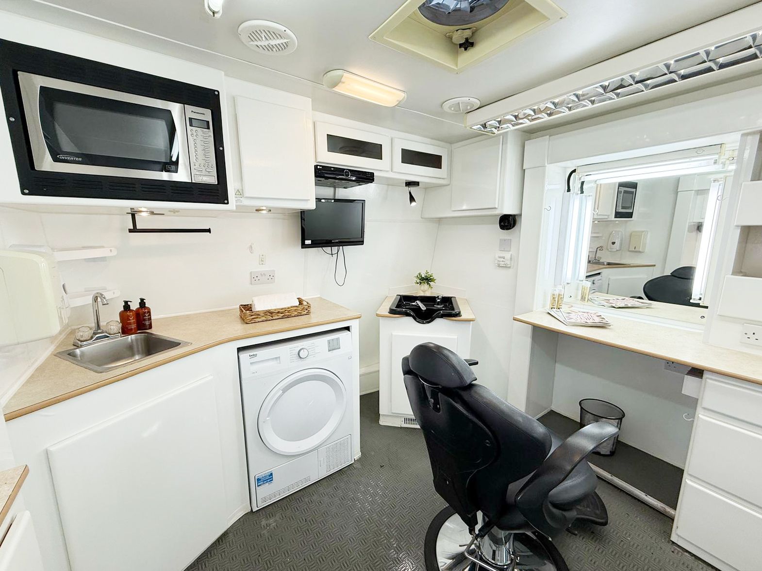 This split level 7 Position Make Up has 5 slide-outs giving a light and spacious environment. It has kitchen facilities and TV at each end together with 2 back wash sinks. There is ample cupboard and wardrobe space and a washing machine.