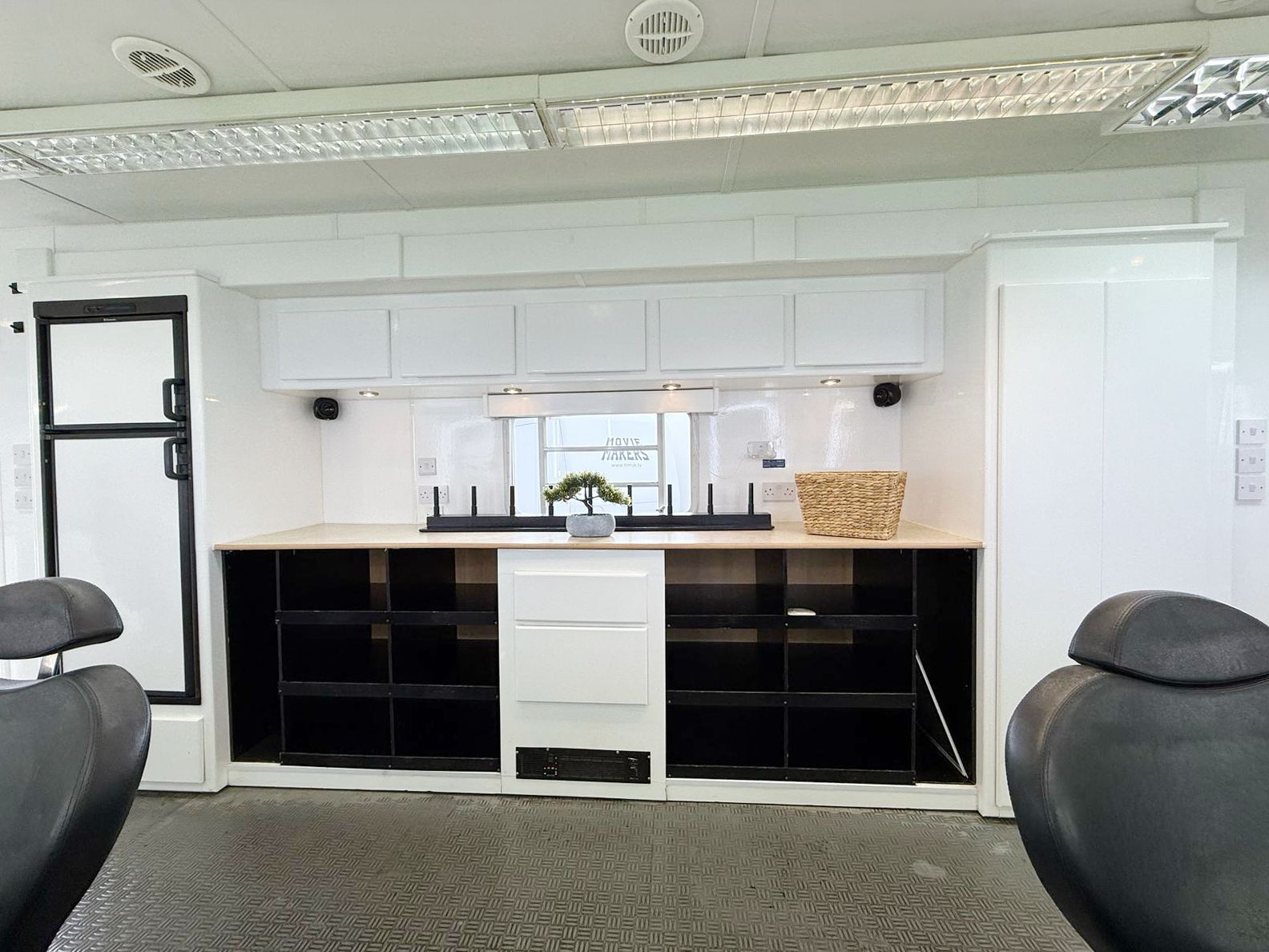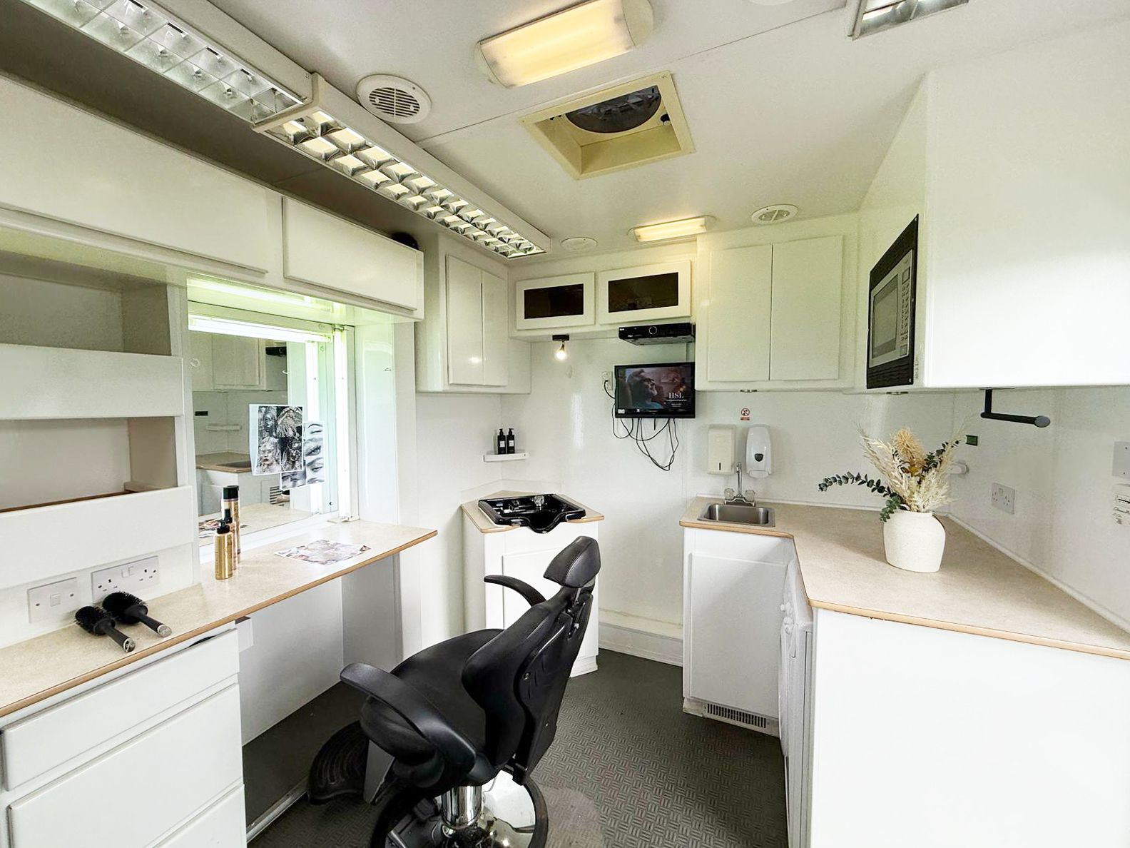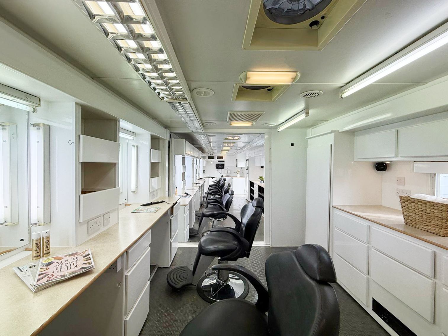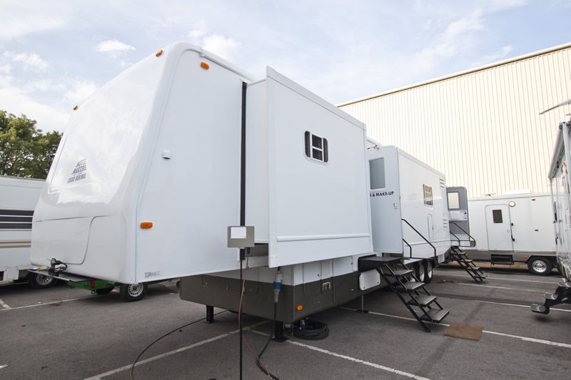 This split level 7 Position Make Up has 5 slide-outs giving a light and spacious environment. It has kitchen facilities and TV at each end together with 2 back wash sinks. There is ample cupboard and wardrobe space and a washing machine.