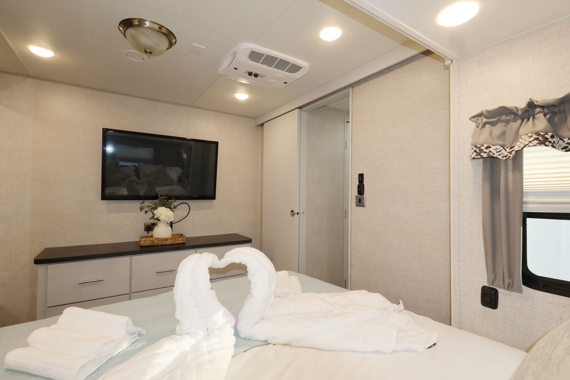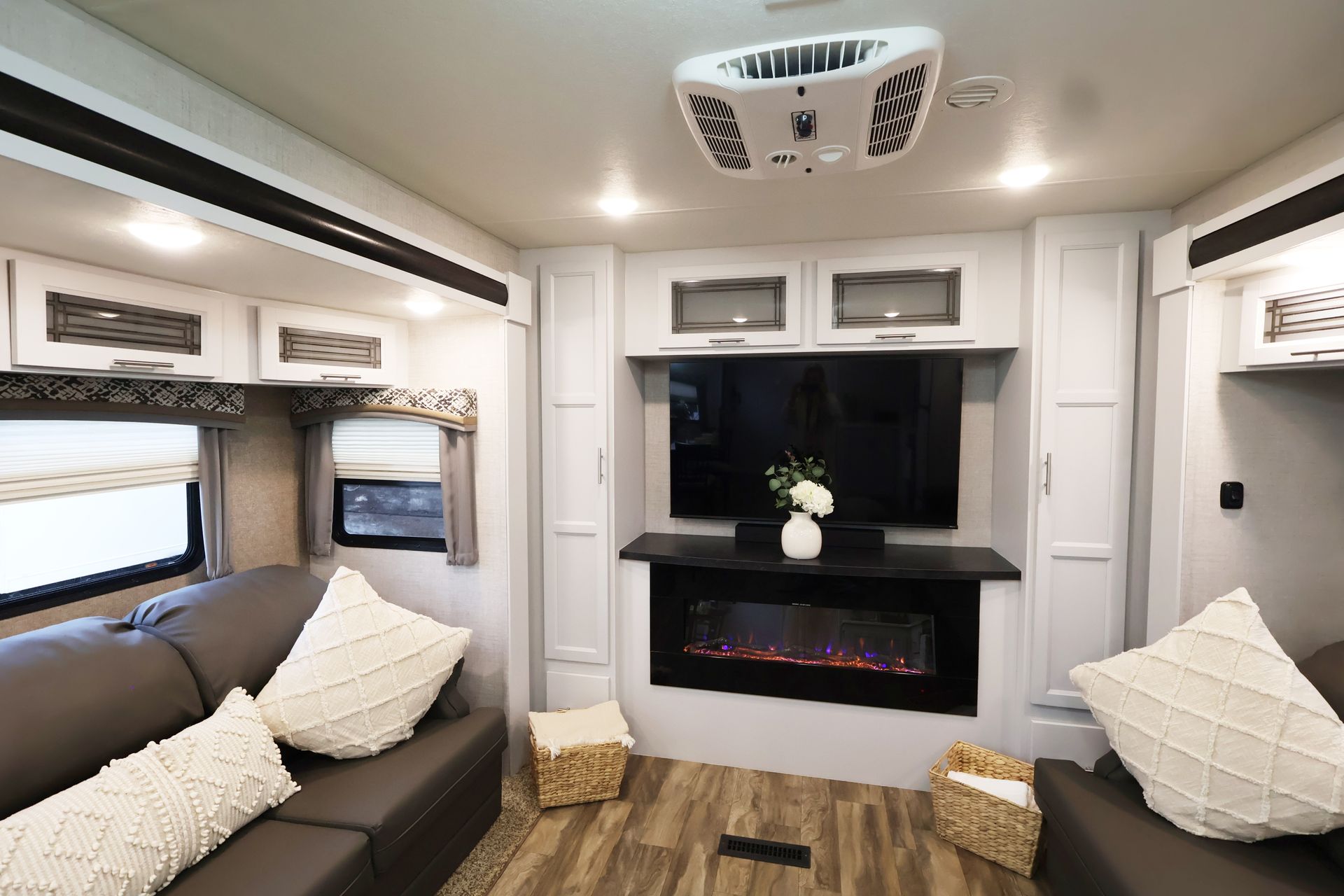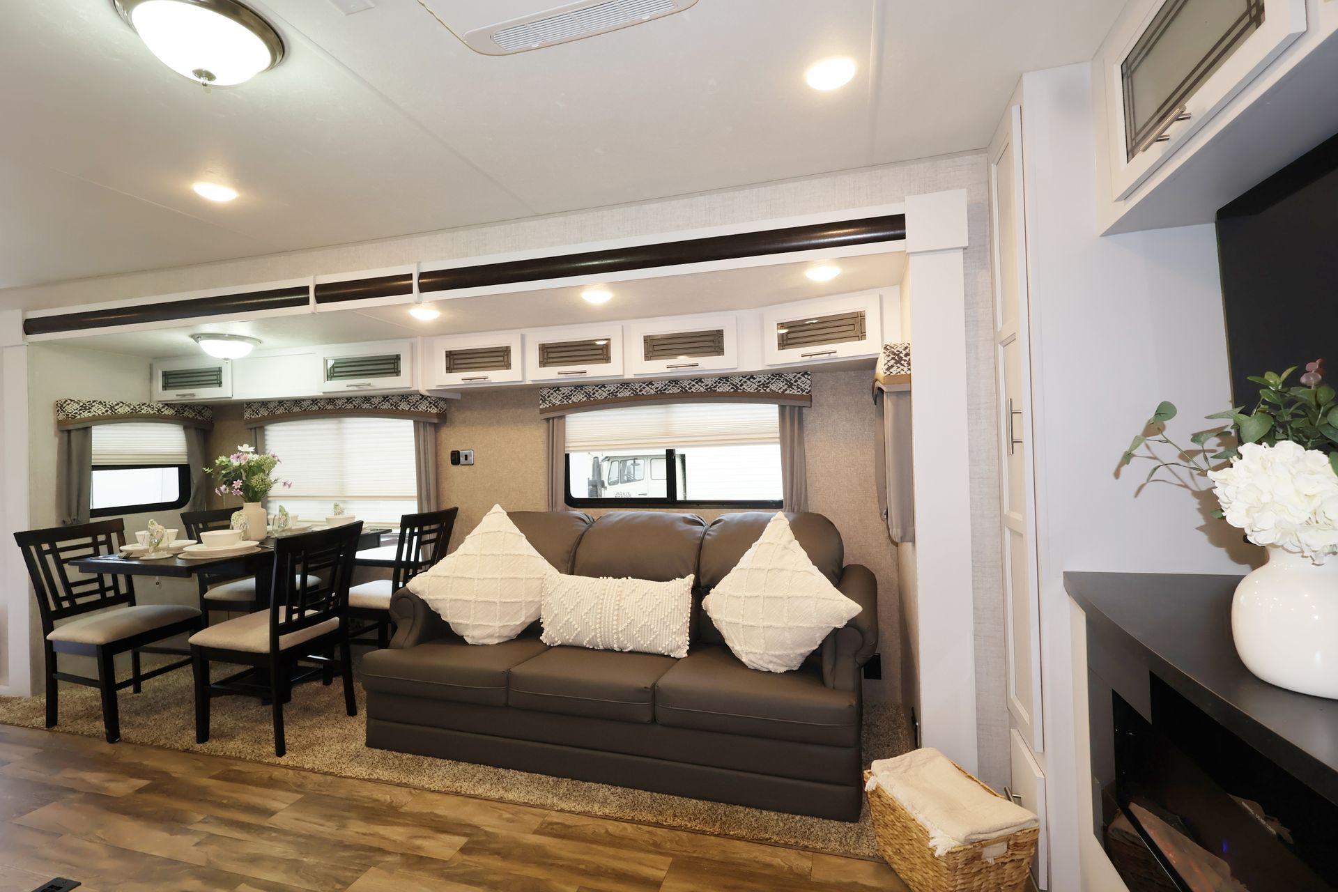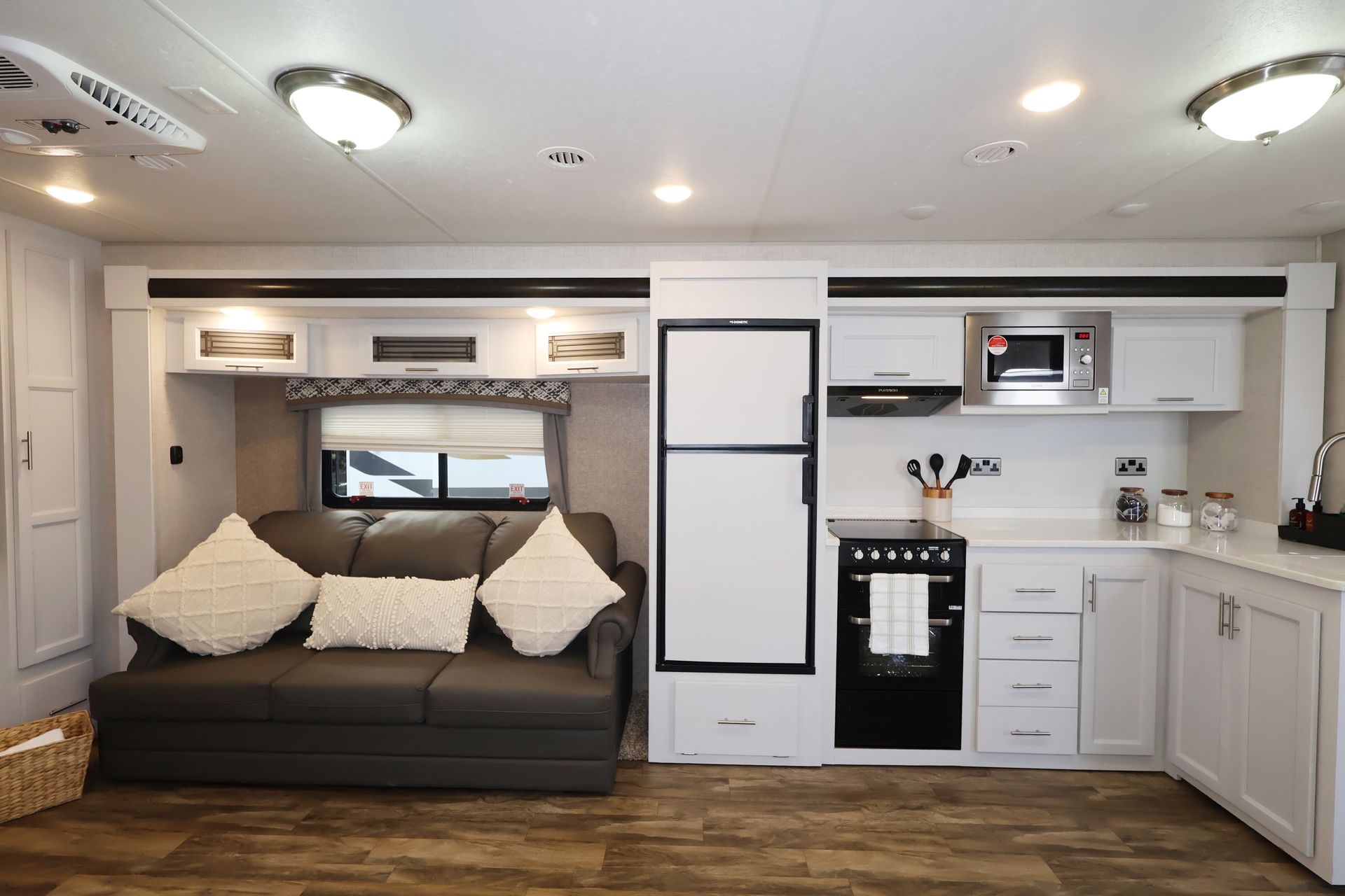 The Hyline is our largest travel trailer with a beautifully decorated interior and is packed with residential style features. This trailer gives you everything you are looking for in your home away from home.