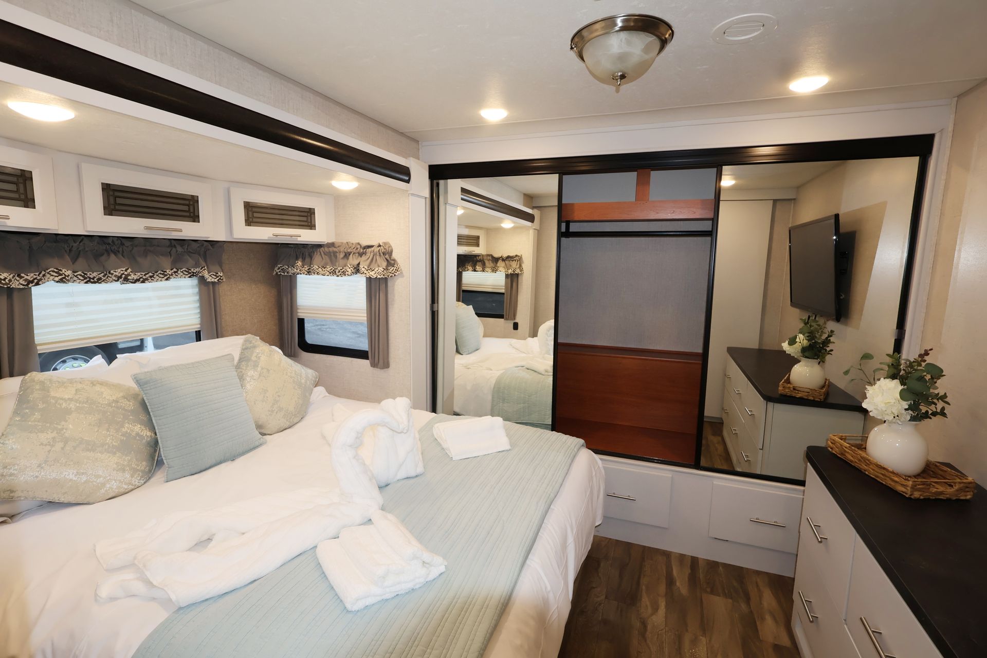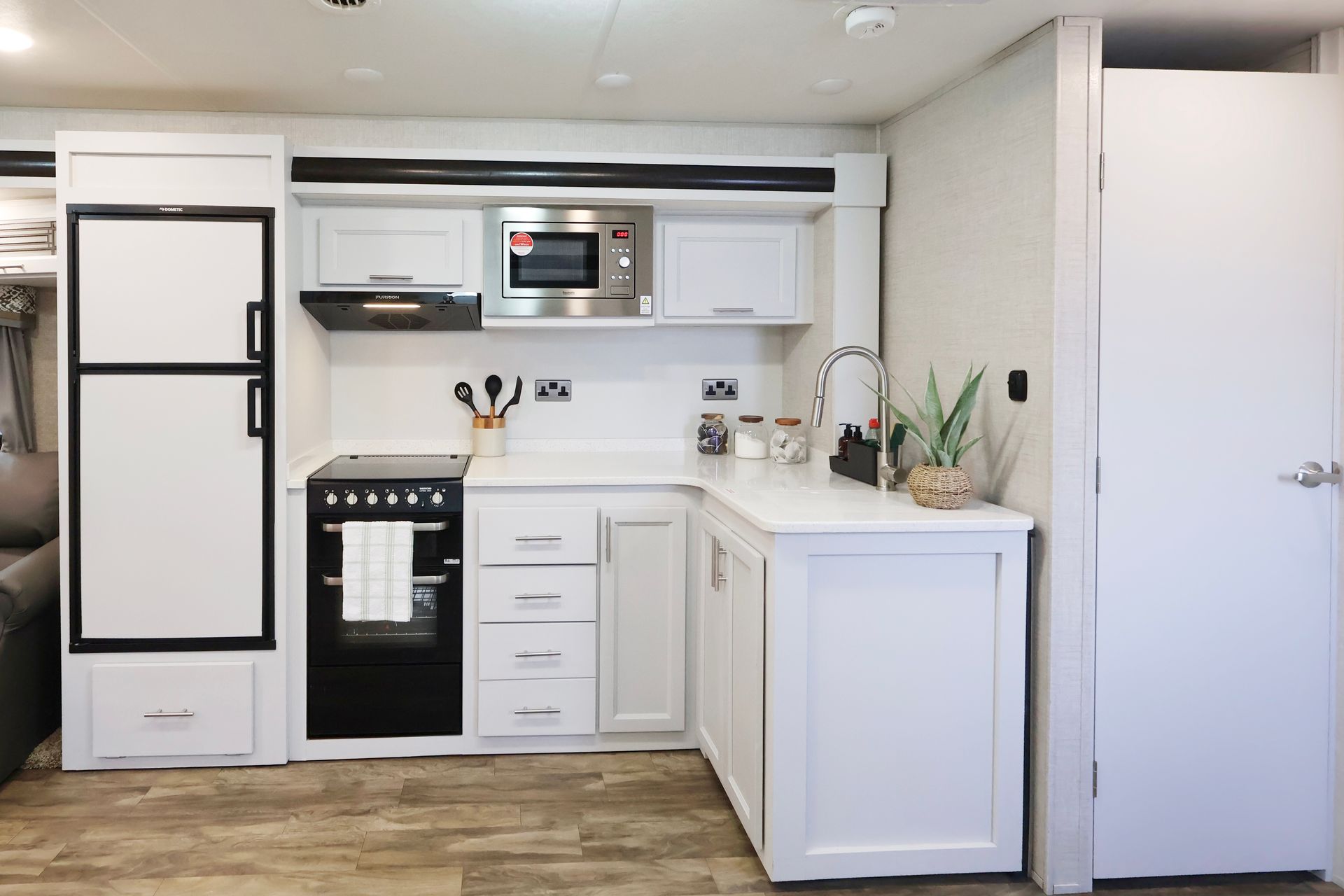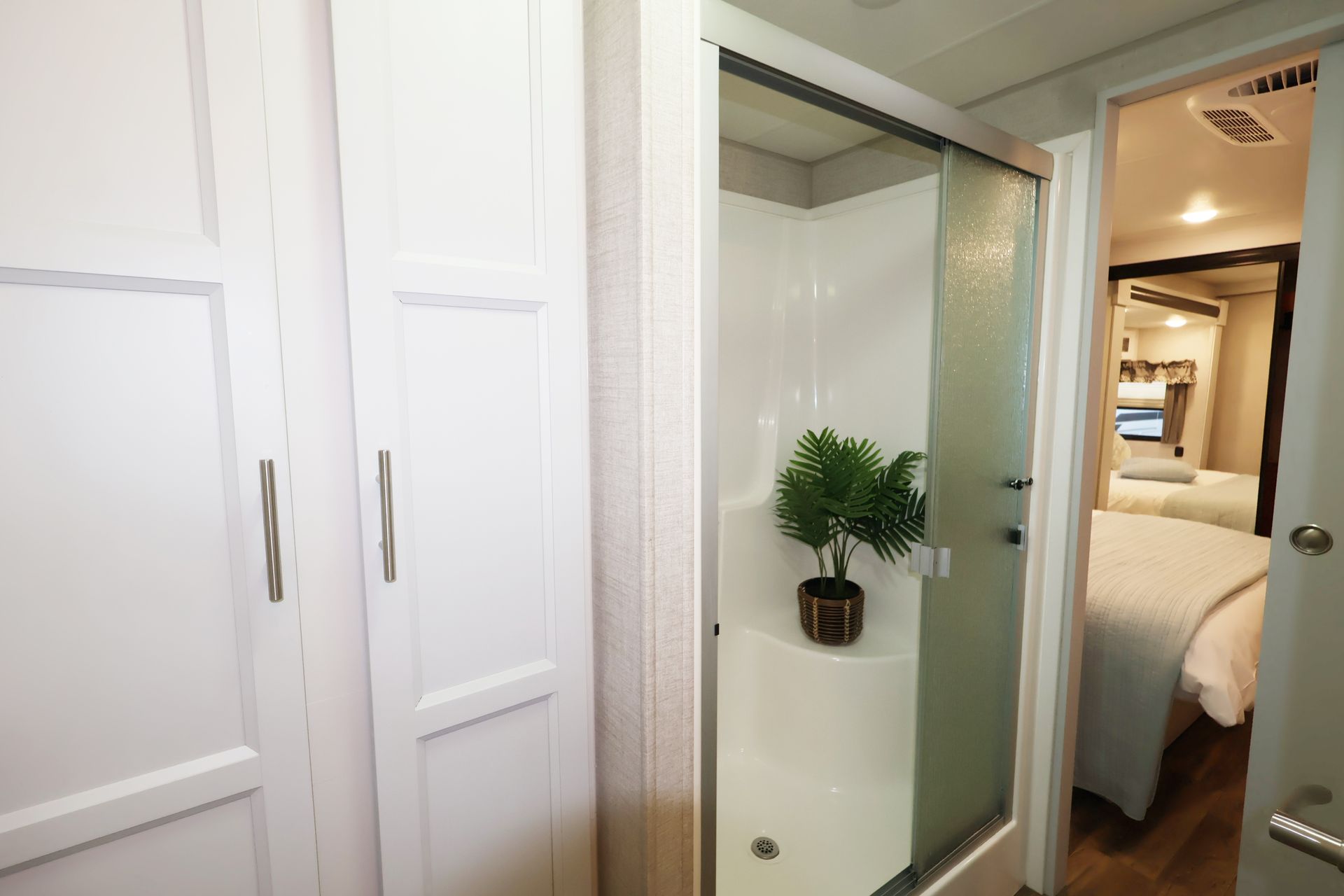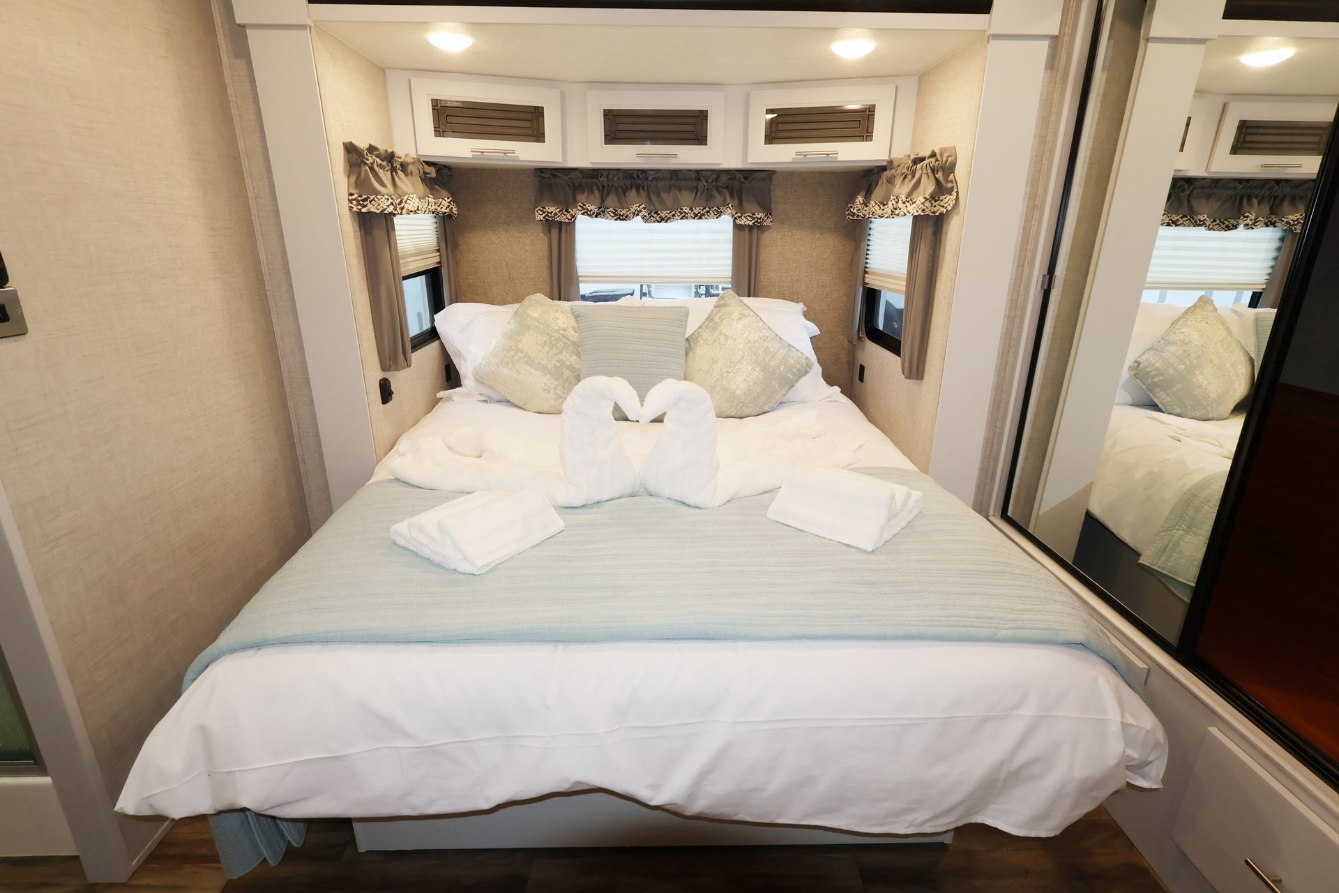 The Hyline is our largest travel trailer with a beautifully decorated interior and is packed with residential style features. This trailer gives you everything you are looking for in your home away from home.