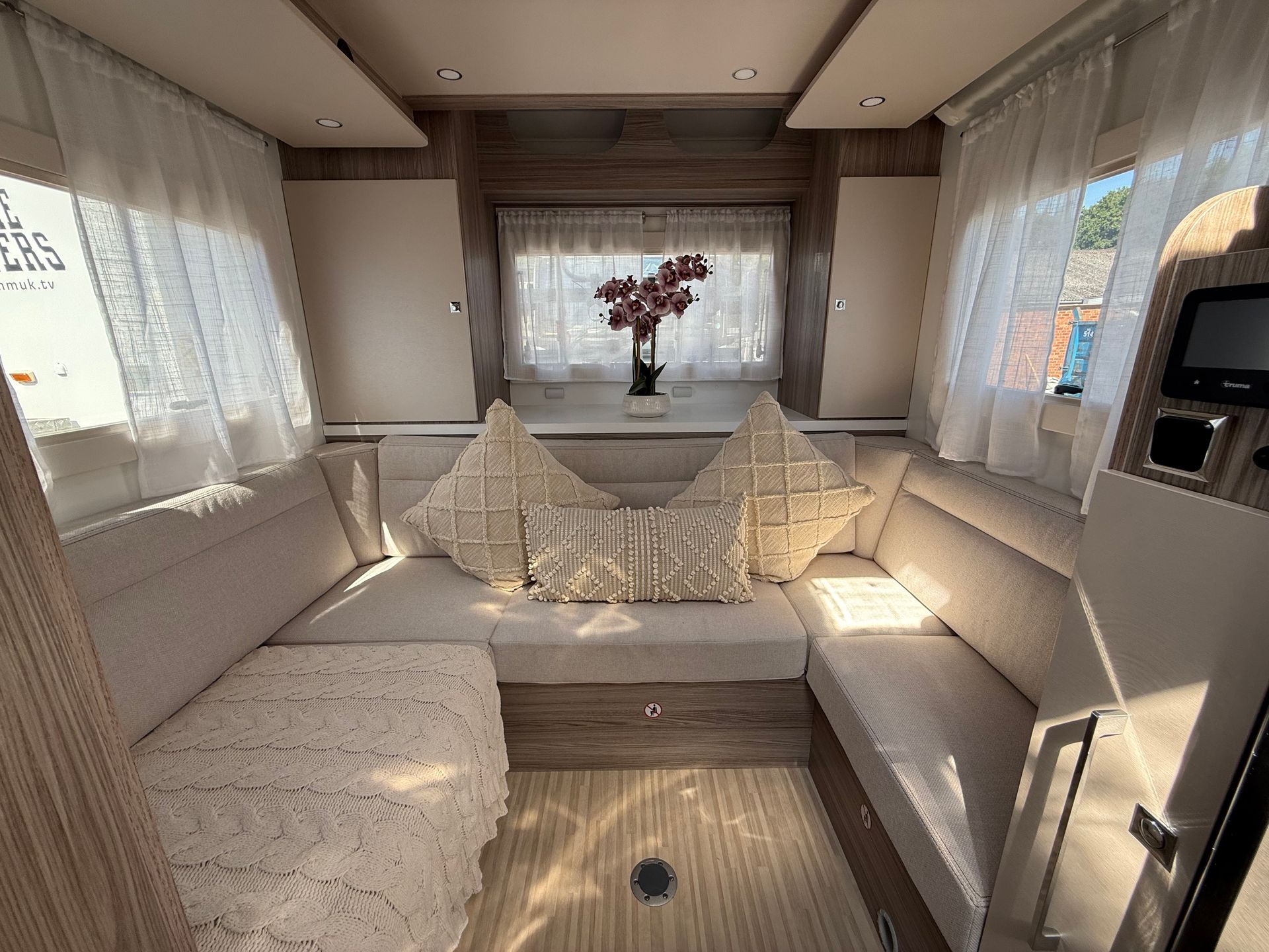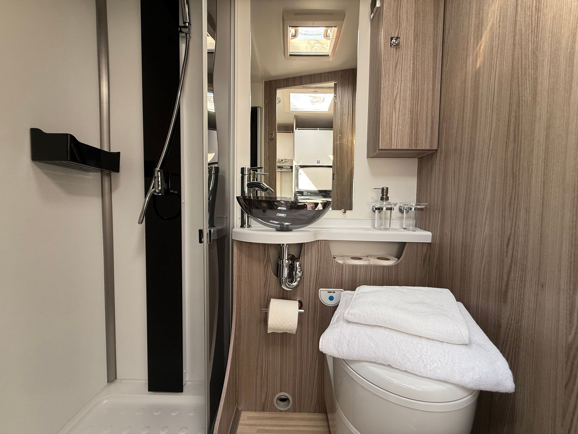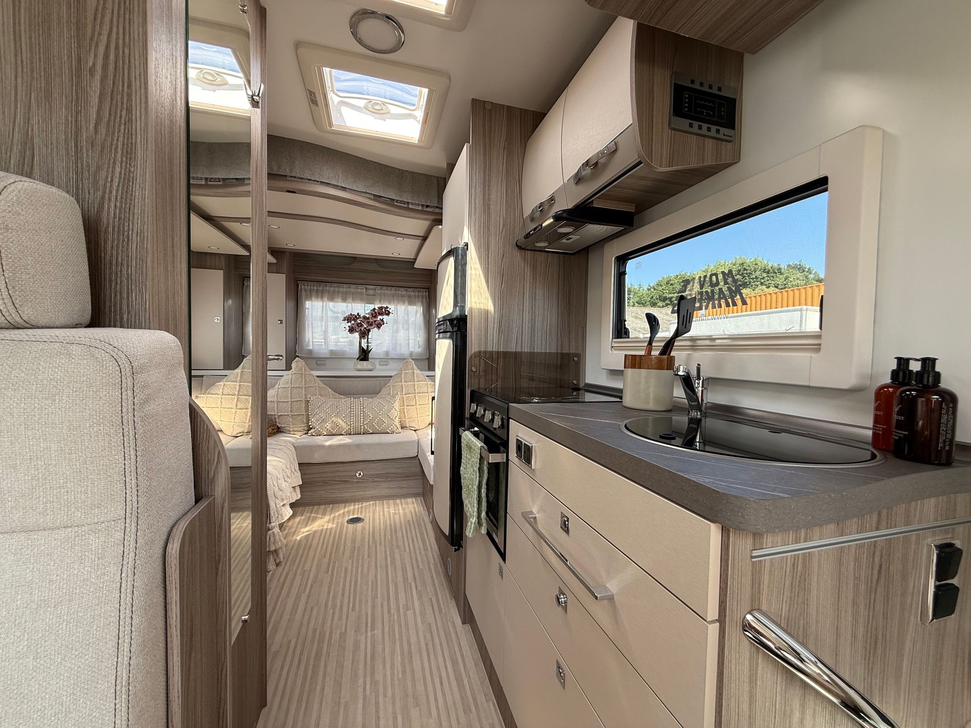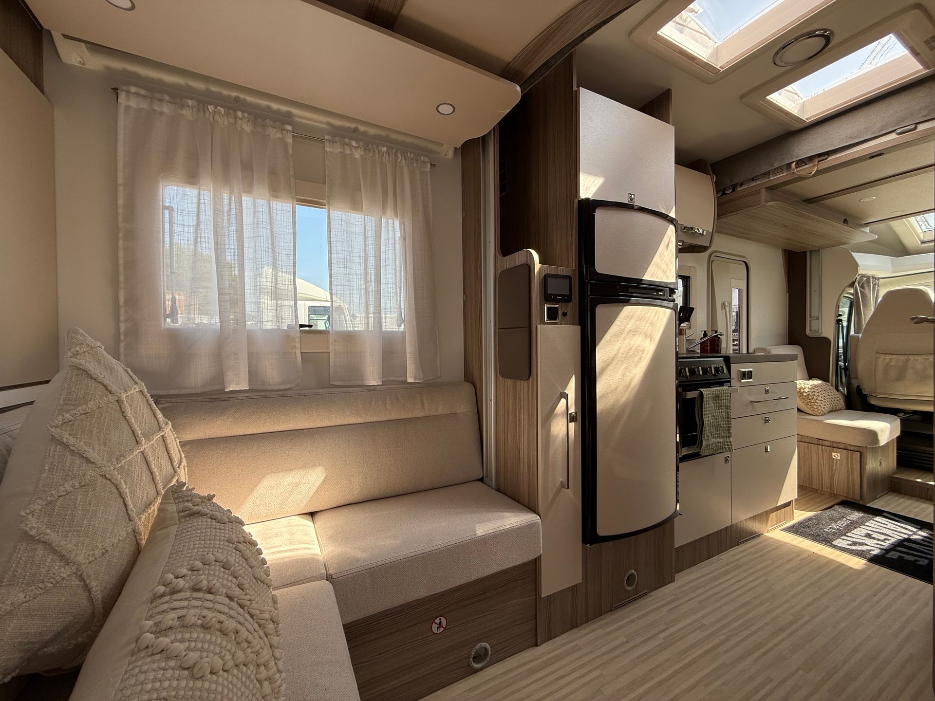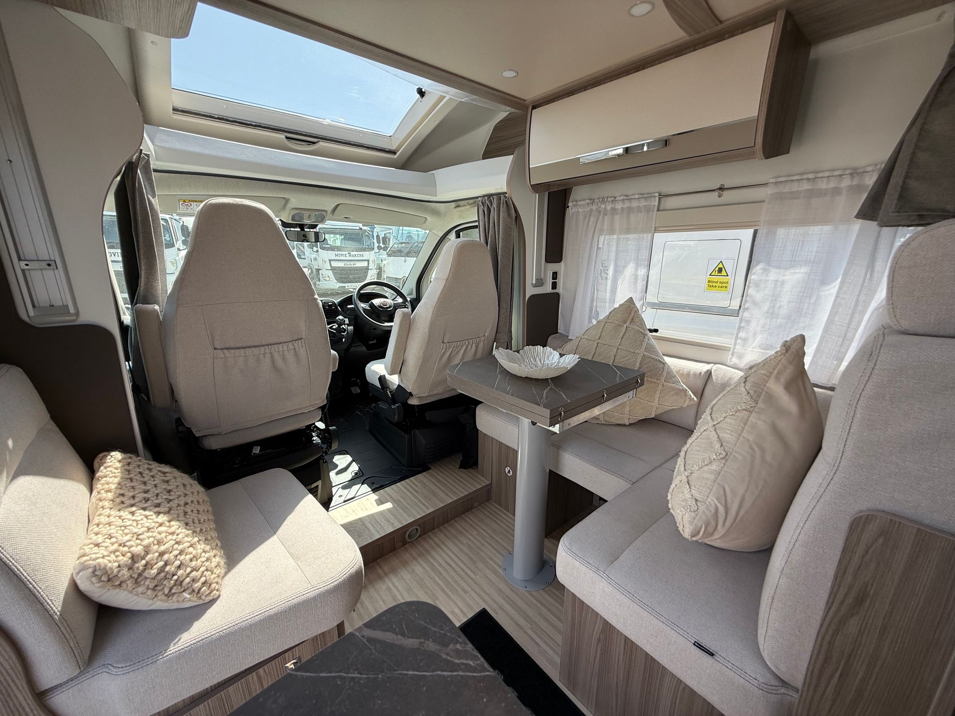 Designed for comfort and convenience, this modern motor home offers a private en-suite, a fully fitted kitchen, two versatile double bed options, and a stylish open-plan lounge and dining space.