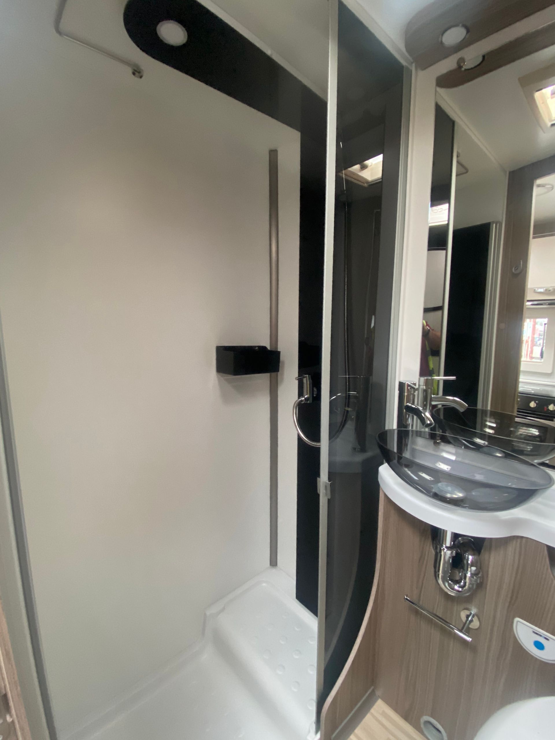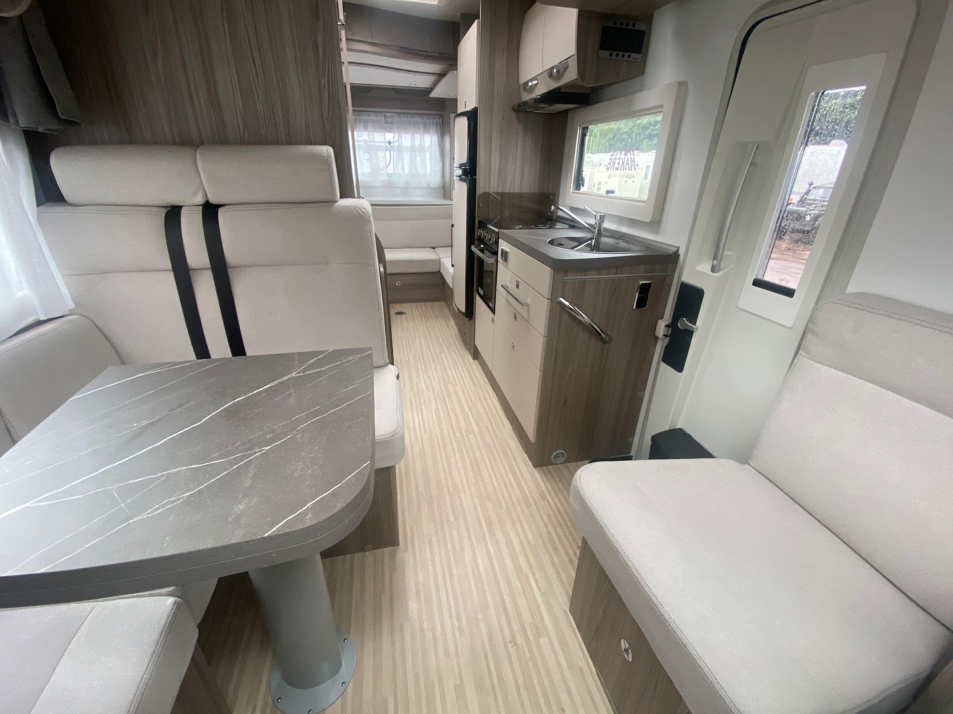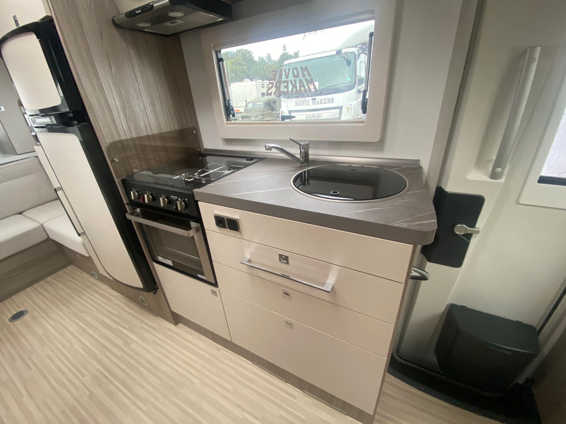 This Motorhome has 4 berths and 4 travelling seats. The motorhome layout offers two spacious living areas at the front and rear with two multi positional electric double drop down beds. This motorhome is equipped with a cruise control, cab air conditioning, electric wing mirrors and alloy wheels. There is a kitchen area with 1 electric and 2 gas hobs, Oven and fridge plus stainless steel sink with glass lid. Also included is an overhead extractor hood. ๏ปฟ