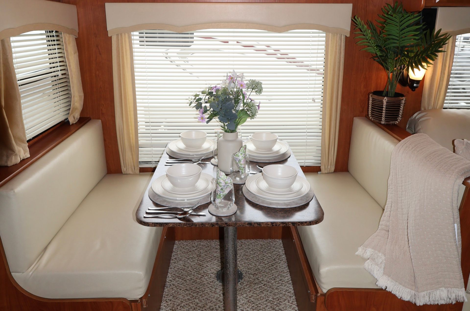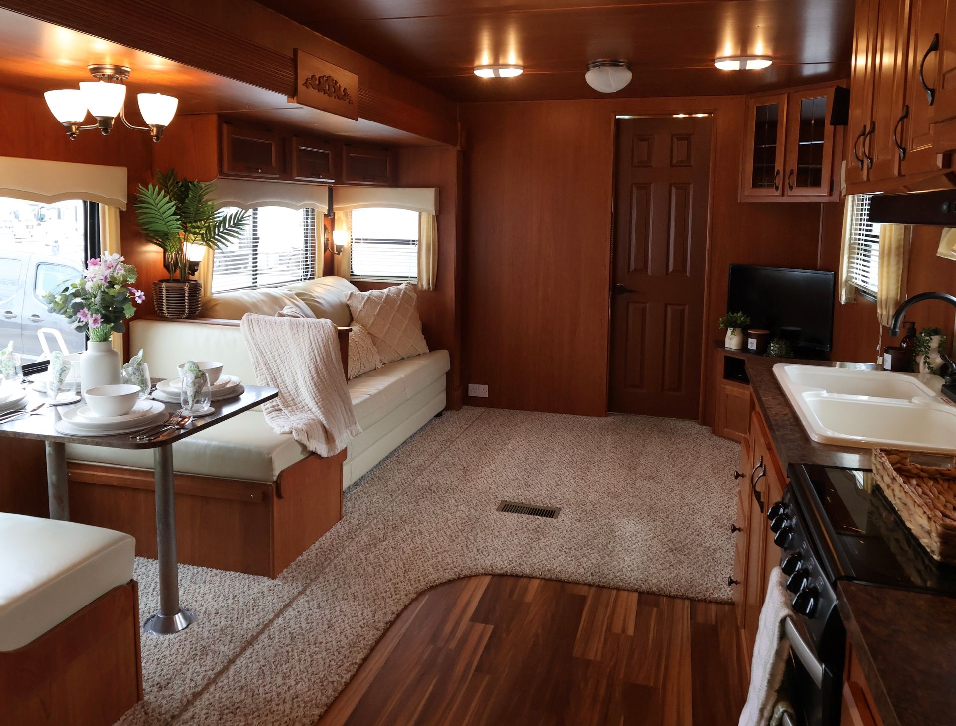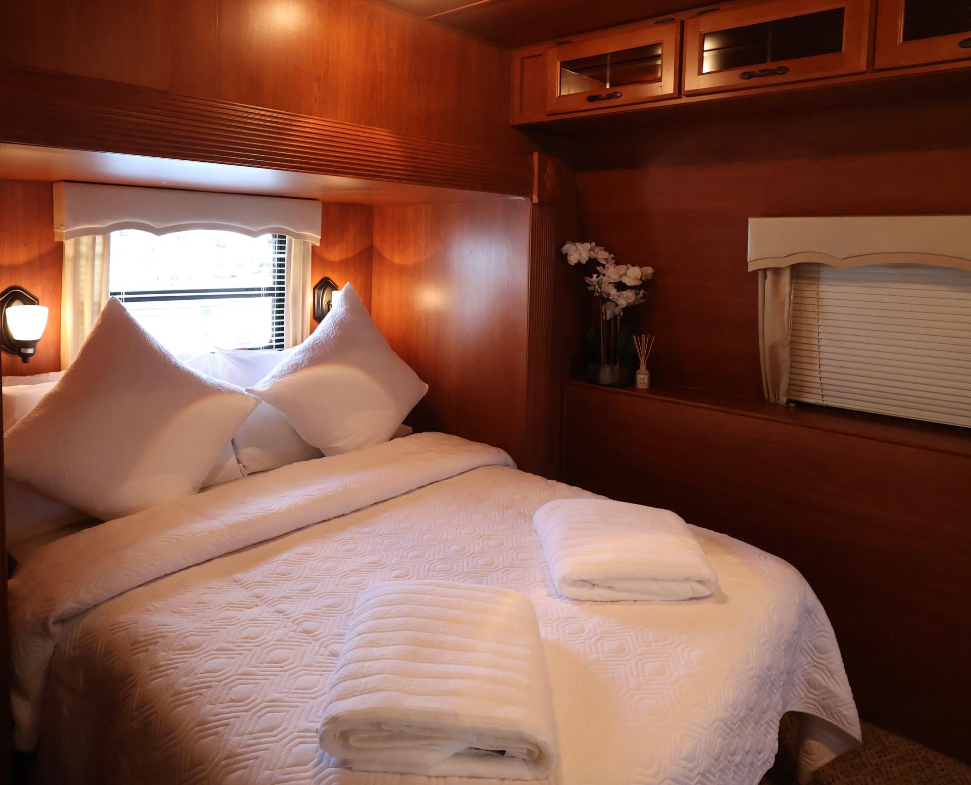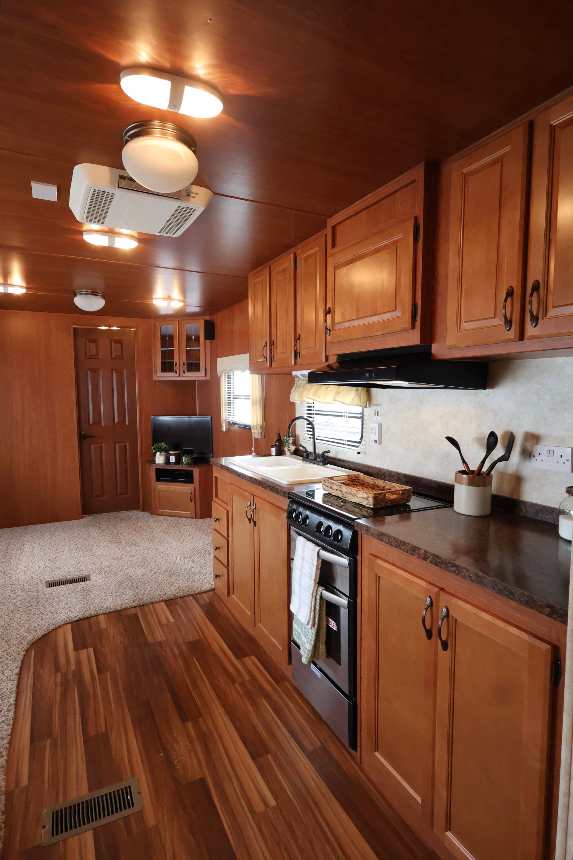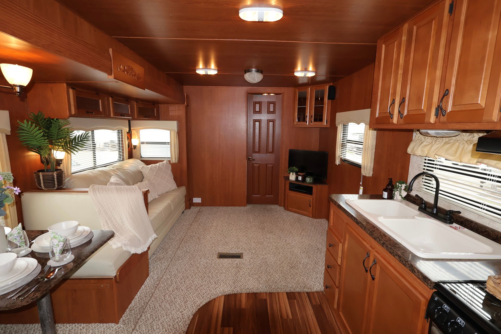 The Pinecreek’s interior is beautifully decorated and packed with residential-style features. This trailer gives you everything you are looking for in your home away from home. The second bedroom can also be converted to an