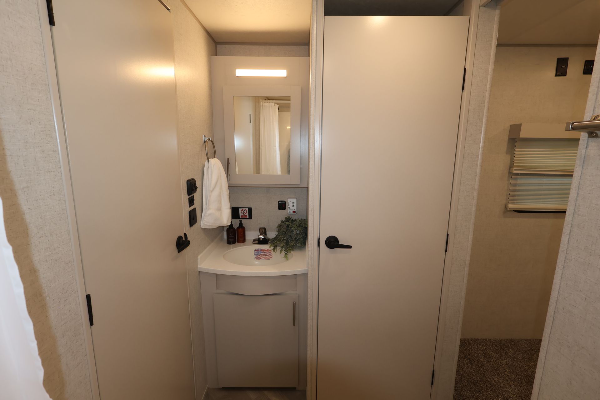 The spacious bedroom and private en-suite offer a sense of calm and relaxation, while the inviting living area provides the perfect spot to unwind in style. Complete with a dedicated dining space for enjoying beautifully prepared meals, the Pine Creek combines warmth, sophistication, and practicality in equal measure.