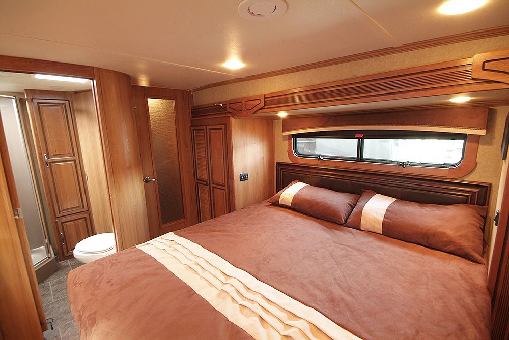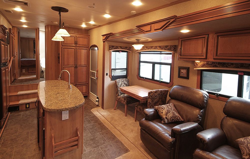 The 1 bedroom Redwood with 3 slide outs makes a spacious and comfortable luxury artists trailer. The traditional decor and fittings create a real home from home atmosphere in which you can totally relax.
