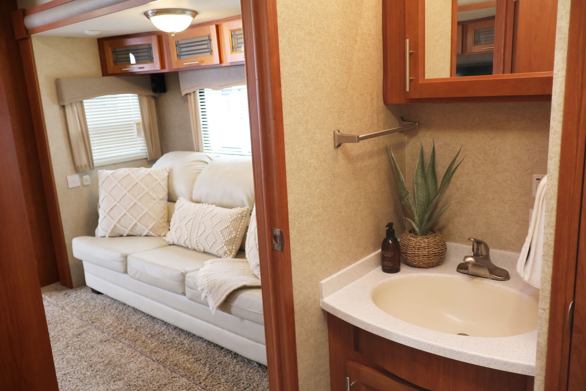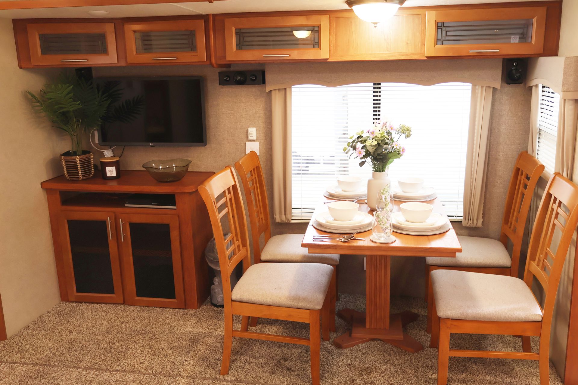 The Pinecreek’s interior is beautifully decorated and packed with residential-style features. This trailer gives you everything you are looking for in your home away from home.